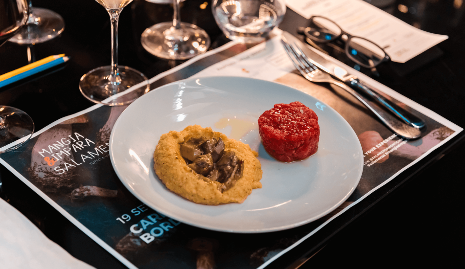 Nell’ultima serata del 18 settembre, Danilo Cazzamali ha presentato la sua Fassona di razza piemontese, un esempio perfetto di carne sana, sicura e correttamente confezionata, nel suo packaging monouso a triplo strato. I piatti pensati per la serata hanno rubato la scena, mentre in sala si discuteva di qualità, sicurezza e conservazione della carne, con il biologo nutrizionista Dott. Omar Scomodon.