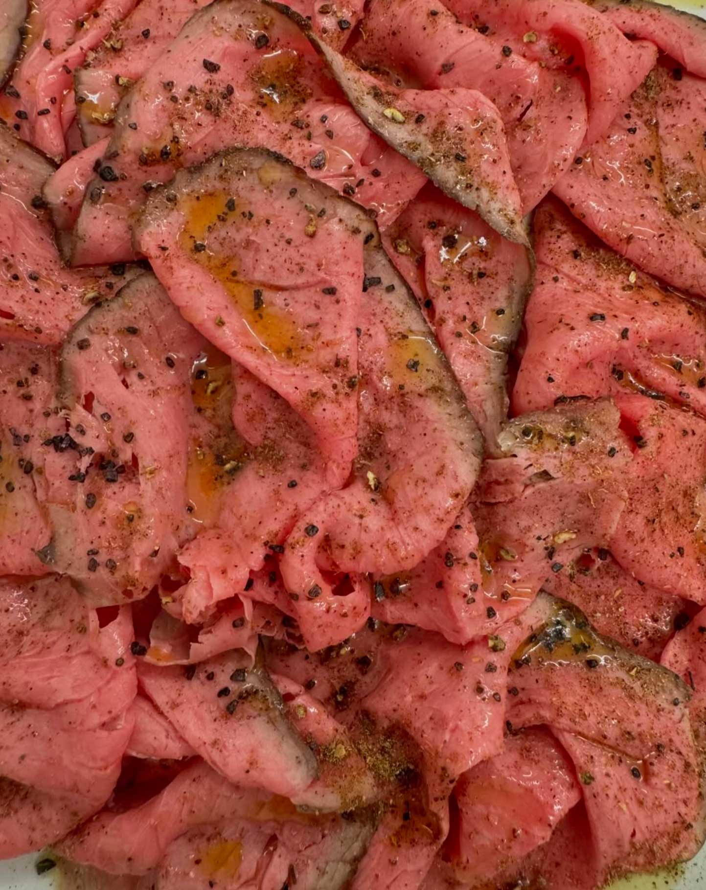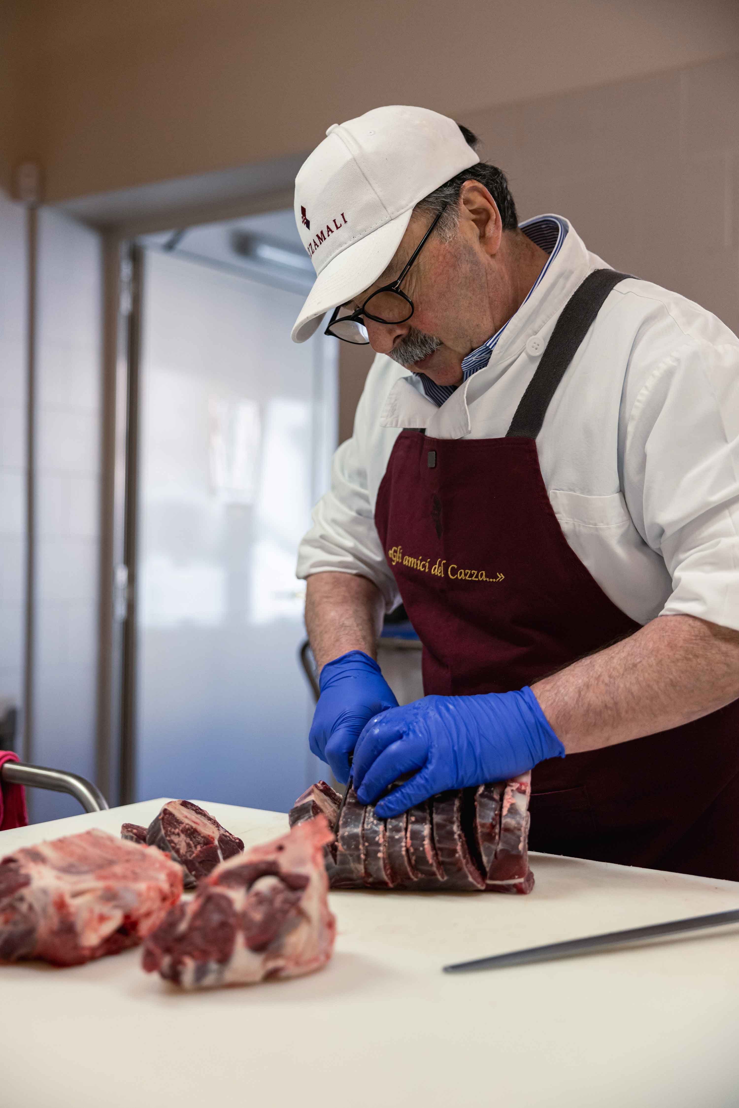 Per Silvio, Franco Cazzamali è il macellaio di famiglia: da bambino frequentava la sua bottega e ha imparato a riconoscere la cura e l’etica che guidano ogni taglio. Quando si è trattato di scegliere “chi forniva cosa”, la decisione è stata immediata: la filosofia di Cazzamali, attenzione agli allevatori, controllo dell’alimentazione, tracciabilità totale e benessere animale, coincide con i valori del Gān Bēi.