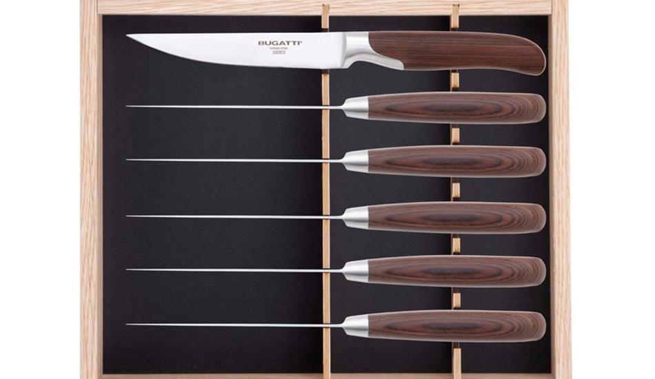 Oggi, questa esperienza è a portata di mano: i coltelli da bistecca Bugatti sono disponibili presso la macelleria Cazzamali di Romanengo in confezioni da quattro o sei coltelli.