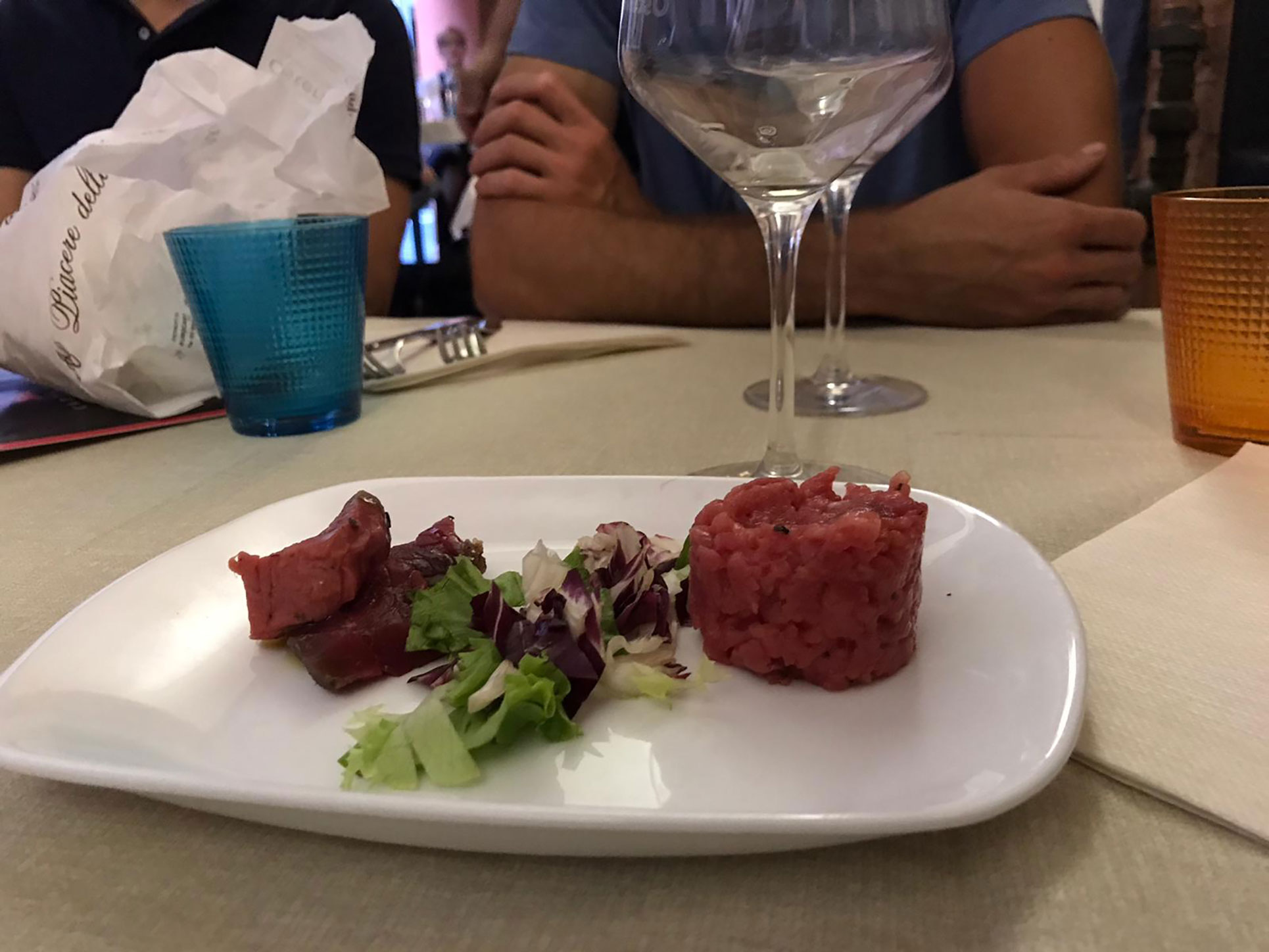 Battuta al coltello, preparata sul posto dal nostro Danilo davanti a un pubblico curioso e, a uno sguardo più attento, già famelico.