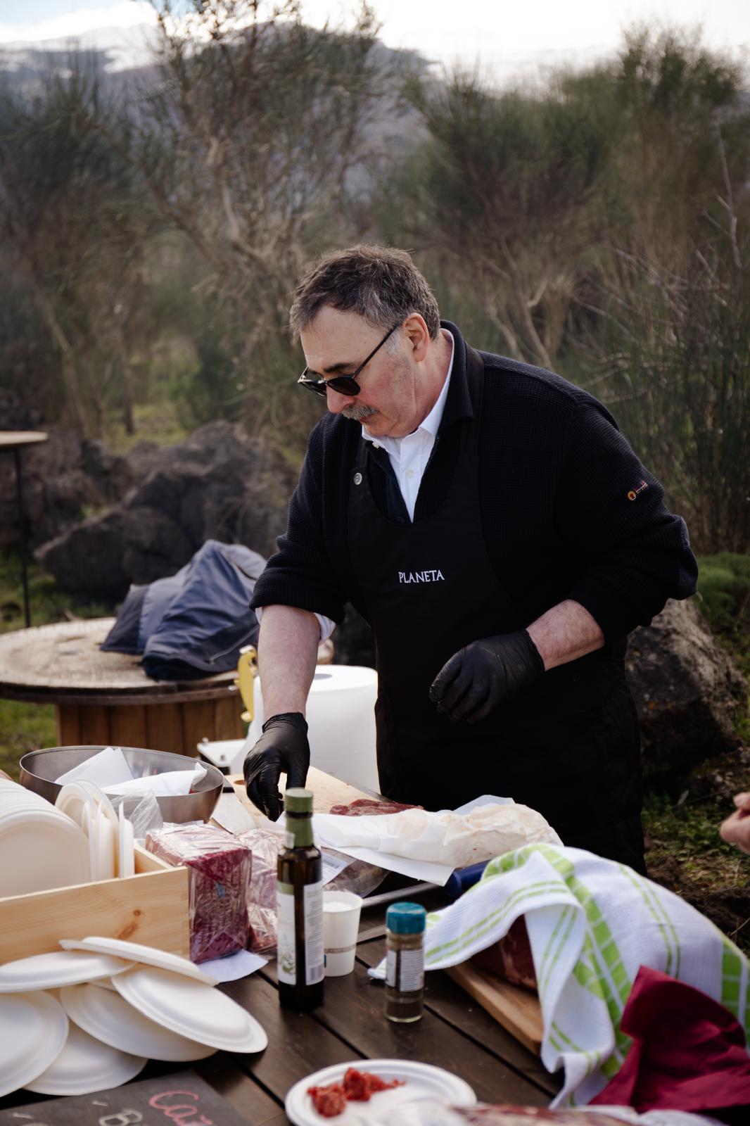 È andata più o meno in questo modo la trasferta siciliana di Franco Cazzamali, invitato alla quarta edizione di Carnalia, la festa della carne ospitata a Feudo di Mezzo, nella tenuta Planeta sull’Etna. Quasi 400 invitati tra macellai, chef stellati, mondo del vino e dell’ospitalità. E un’eco che ha superato i confini dell’isola, finendo sulle pagine della stampa nazionale.